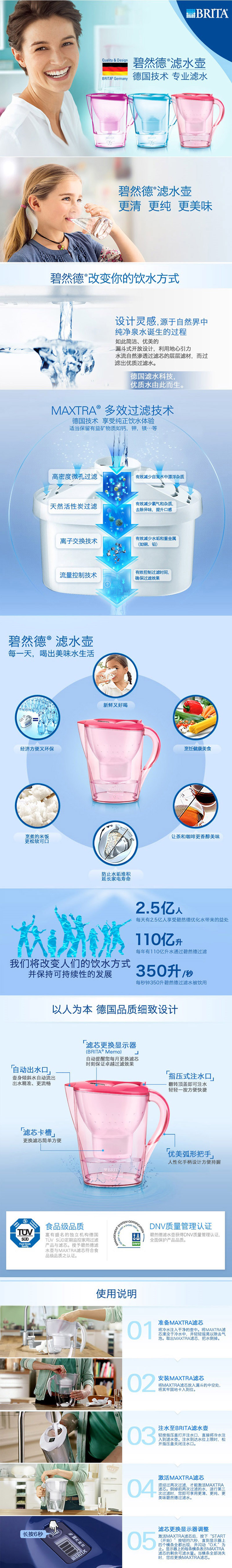 碧然德 滤水壶2.4L 海棠红 单芯
